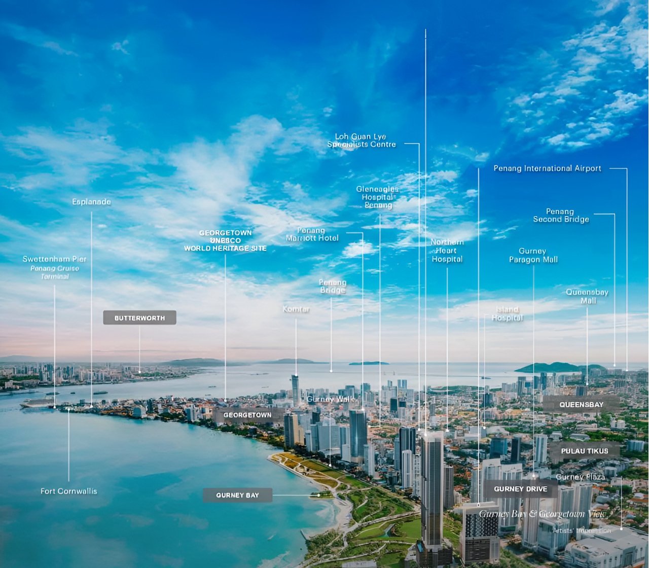 Situated along Gurney Drive, just steps from the upcoming Gurney Wharf and Penang’s vibrant seafront